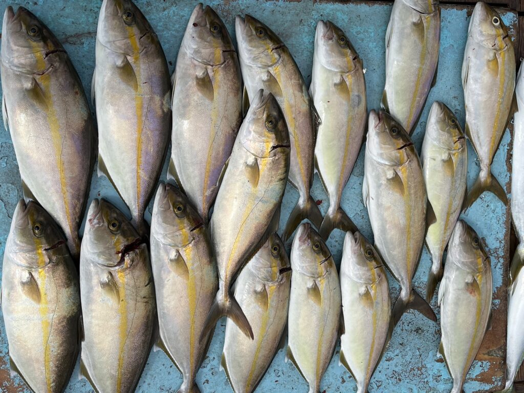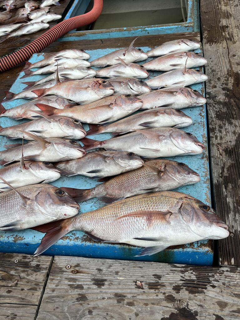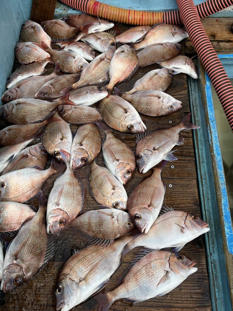 釣果 2025.09.23 9/23日 ウタセエビ🦐の真鯛釣り🎣 朝一、カンパチ狙いから、 太刀魚釣りして、下潮の緩みを 狙って真鯛釣り。 今日は、全て予定通りに魚、食って くれました。 毎日が、予定通りになってくれたら 良いんですが🐟? ウタセエビも順調に入荷出来るように なりました。 秋のウタセエビの真鯛釣り🎣 是非一度チャレンジしてみて下さい。 予約状況みて、宜しくお願いします🙇