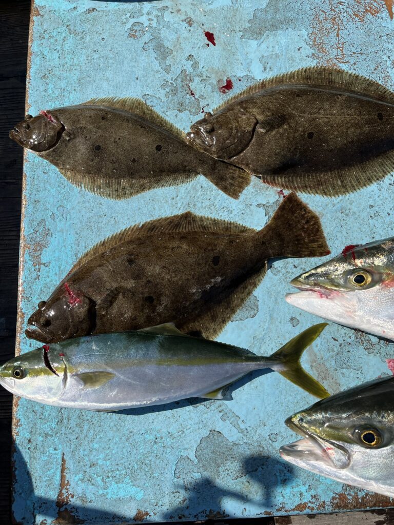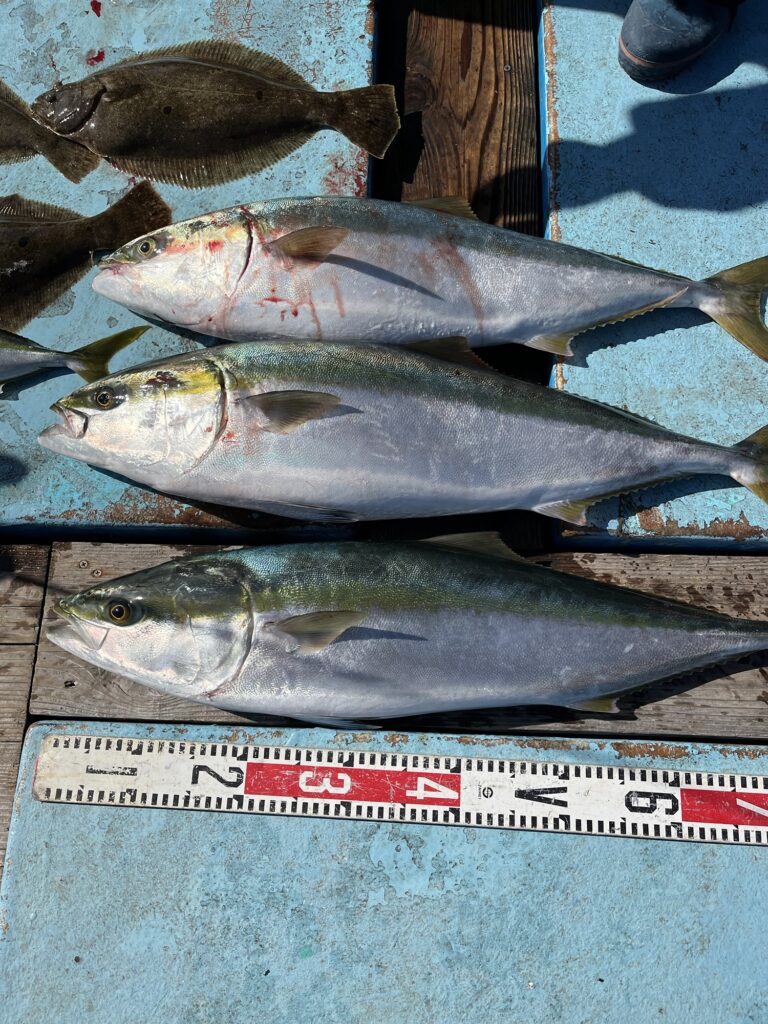 釣果 2025.11.30 今日は、ブリが釣れました。 座布団ヒラメらしき物もかかりました けど、バレてしまいました。残念😢 ベイト反応出てるから、潮周りも 良くなって来ますので、この先 楽しみ良さそうです♪ 12月平日、予約受け付け中ですので 宜しくお願いします🙇🐟🎣