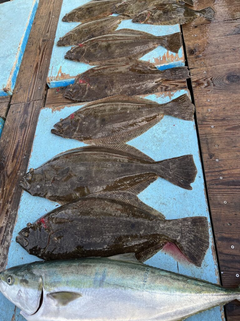 釣果 2025.12.03 活イワシの泳がせ釣り🎣 ブリ、ヒラメ良型のが、釣れました 大分、肉厚になって来ました。 明日は、強風の為、休船しますが、 風が、収まり次第、出船します。 今からは、数釣りは、余り期待 出来ないかと思いますが、座布団 ヒラメが、混じってくると思います。 平日、予約受け付け中ですので、 宜しくお願いします🙇